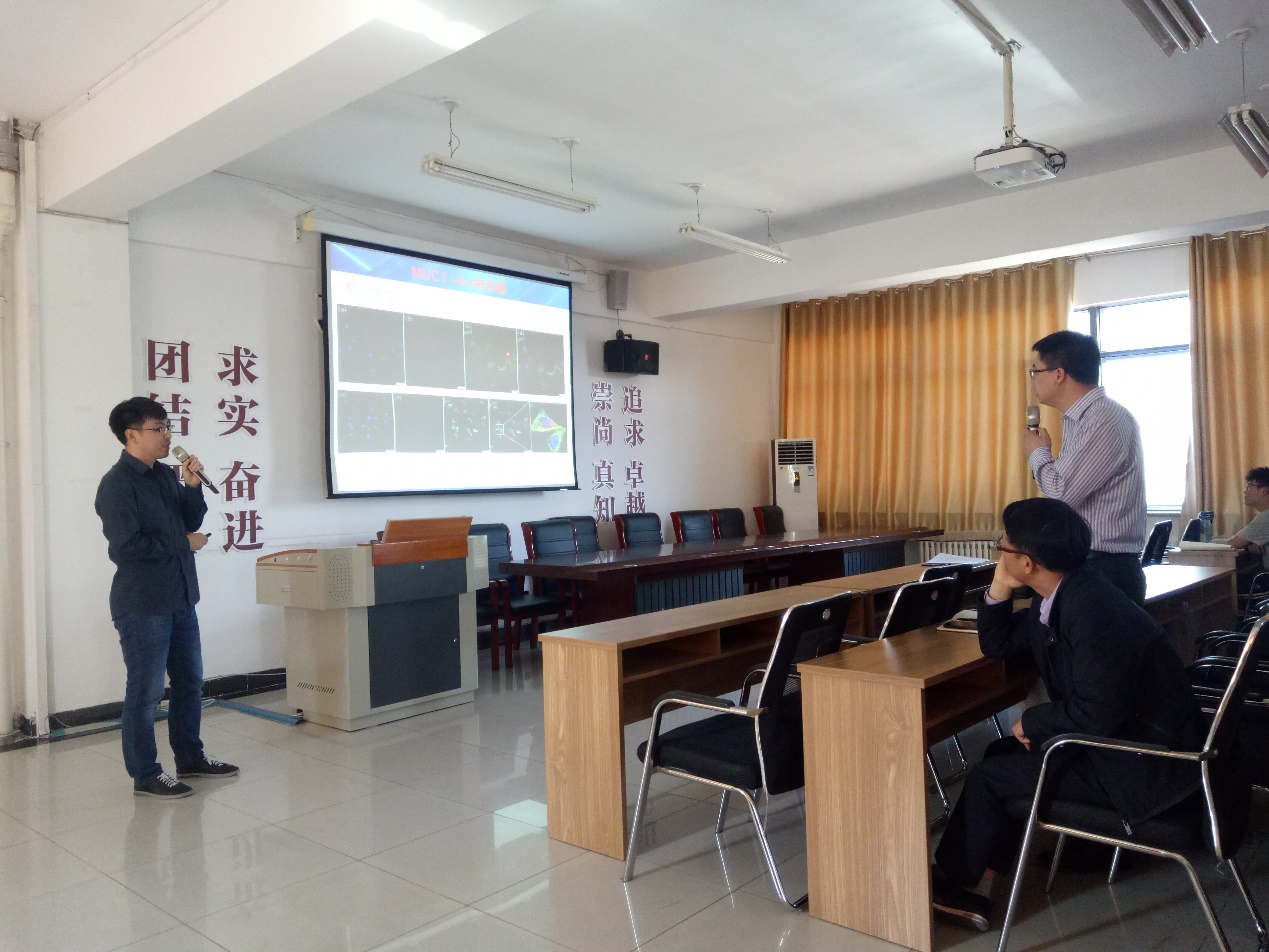 王富研究员作了题为“超分辨荧光显微镜与发光金属团簇”的报告。报告指出了传统光学显微镜的缺陷并提出了解决方法,介绍了一种多功能超分辨显微镜的实现方式和其所用荧光探针的合成。王富研究员介绍的仪器科学引起了同学和老师们的极大关注。在座师生与王富研究员积极探讨这类显微镜的实现方式,并期望能在公司引进。