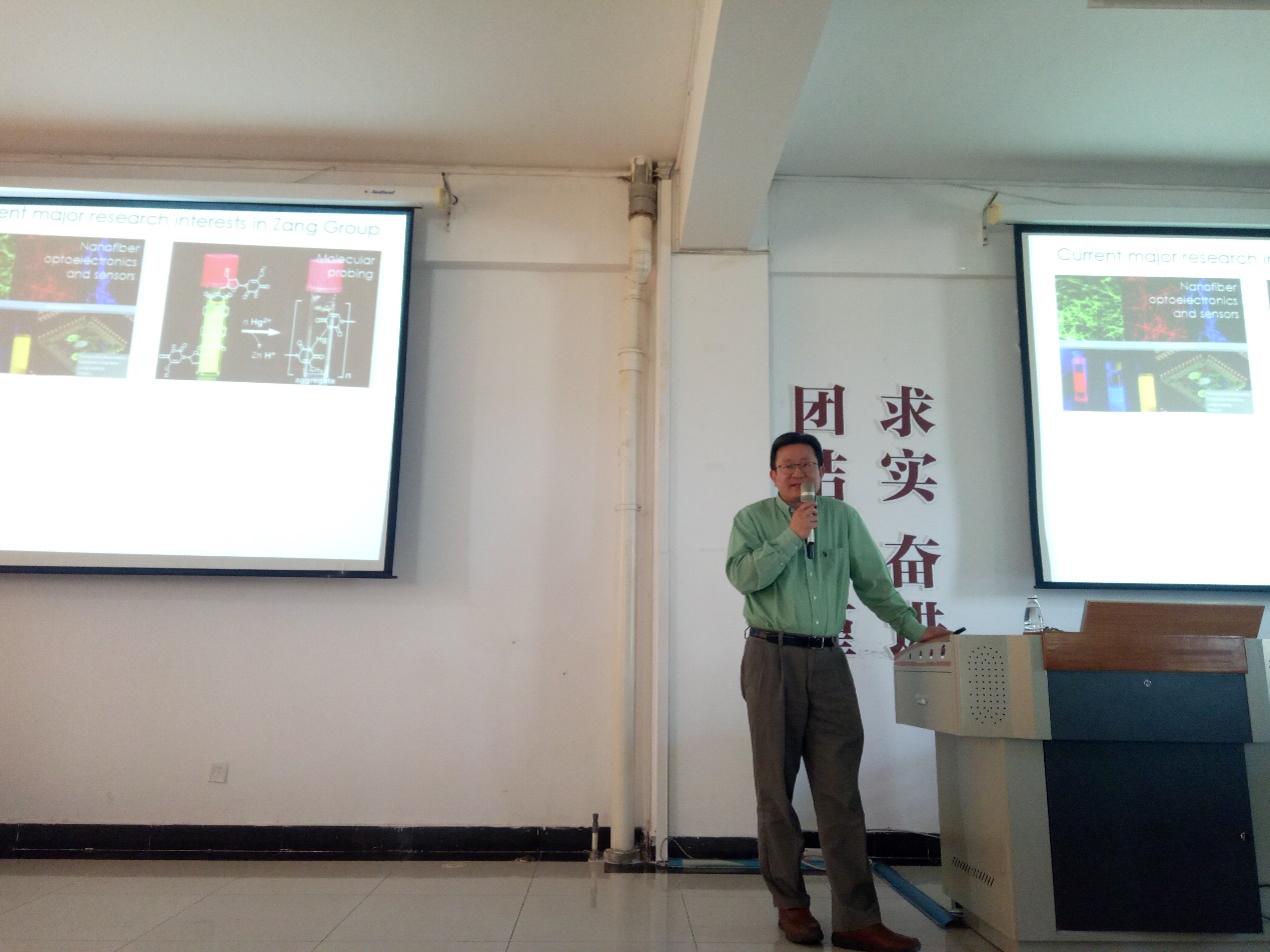 臧泠教授作了题为“1D Molecular Self-assembly: Nanofibers, Sensors and Other Related Optoelectronics”的报告。报告介绍了一维纳米纤维在生物医学、光学器件等方面的研究进展和广泛应用。除此之外,还多次提到犹他大学的团队建设和美丽风光,欢迎公司学子前去访学。臧泠教授的研究工作紧扣时代脉搏和社会需求,从化学的视角提供巧妙的解决方案,使公司师生燃起了极高的科研热情。