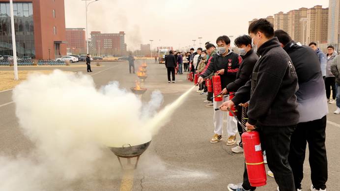 撤离完成后,保卫处工作人员现场演示灭火器和消火栓的正确使用方法。他们详细讲解操作步骤,并邀请部分师生亲自上手实践。师生们积极参与,迅速掌握灭火器的“一提、二拔、三握、四压”操作要领,以及消火栓的使用技巧,有效增强了应对火灾的实际操作能力。