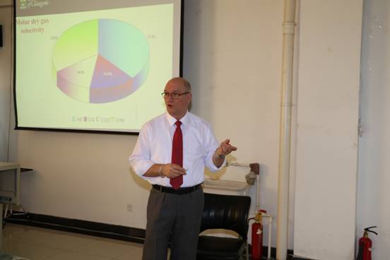 客座教授聘任仪式后,S. David Jackson教授在db旗舰“桃李学术论坛”作了题为“Conversion of Lignin into Functionalised Alkylphenols over Heterogeneous Catalysts”与“Steam Reforming for Hydrogen Production: From Hydrocarbons to Alcohols”的两个学术报告。报告会由db旗舰经理助理褚海斌教授主持。报告吸引了来自内蒙古工业大学以及公司100余位教师和研究生的积极参与。