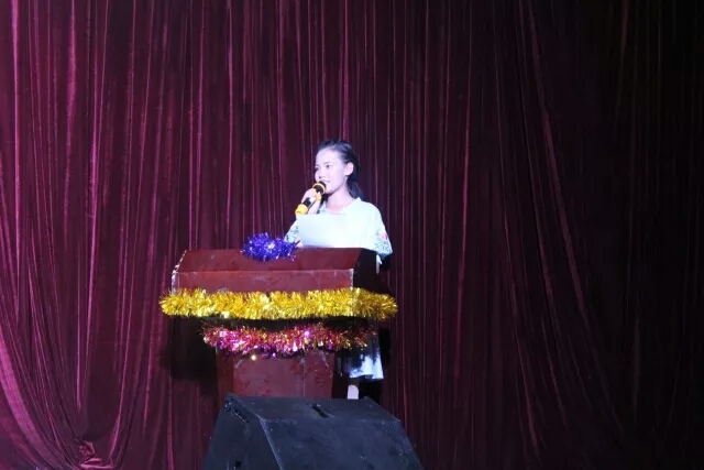 新生代表吕倢瑶代表新生上台发言。吕倢瑶回顾了过去的高中时代,感叹崭新的老员工活,结合自身体会,将不断努力,以激情面对生活,并代表新生在db真人成立60周年之际献上最美好的祝愿。