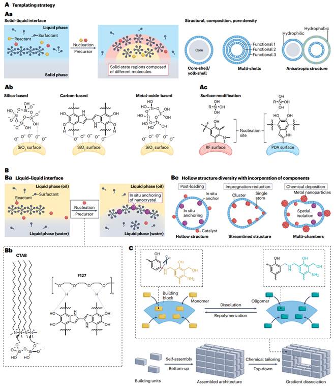 该论文基于自组装和界面化学的模板策略,将多孔纳米反应器的合成分为液-固硬模板、液-液软模板和界面化学裁剪三种方法,这些已经发展成为构建先进纳米反应器的通用途径。在催化应用中,多孔纳米反应器提供了高效的传质通道与多功能组分,确保了多步反应的时空耦合;而在储能应用中,具有中空多壳结构的纳米反应器能够减缓离子穿梭效应,并有效缓解充放电循环过程中的体积膨胀。此外,研究还展示了多孔纳米反应器在蛋白质、酶和药物装载中的灵活应用,为未来的生物医学研究提供了新思路。