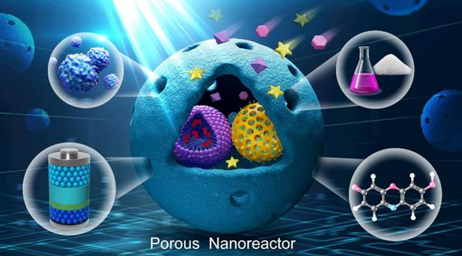 在自然界中,化学反应往往发生在细胞、细胞器、病毒等密闭空间内。得益于细胞多层次的中空结构和特定的生化功能,化学转化可以在纳米级甚至分子和原子水平上进行调控。受大自然的启发,目前已经采用多种合成策略设计了多种具有明确中空结构和可调节分层空间的纳米结构材料:多孔纳米反应器。纳米反应器通常被认为是一个纳米范围内的小隔间(具有亚微米尺寸),分子可以通过隔室的膜或壳进行交换,如纳米孔、中孔通道和纳米空腔,具有择形催化效应(如分子筛材料)、约束效应和偶联效应。在其应用方面,密闭的空腔极大增强了反应物的富集程度,通过将多个催化官能团放置在顺序定位的隔间中来实现级联反应,从而提高了反应速率和时空耦合。此外,多孔纳米反应器的分区化对于混合储能技术也很有价值,它具有缓冲空间、传质通道和孔隙体积,可以减轻体积膨胀并产生更高的能量密度。这些特性使材料具有多种功能,为许多领域的研究提供了平台。