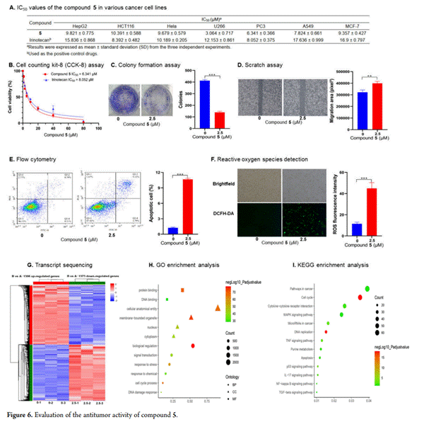 最后,化合物 5 在体外抗癌实验中表现出优异活性:对 U266 骨髓瘤细胞的 IC50值达3.06 μM,优于临床药物伊立替康;一系列的机制研究表明,该化合物具有潜在的抗肿瘤活性,这一发现为含 SF5基团的抗癌药物研发提供了重要线索。