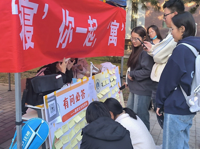 同学们在“有问必答”留言板上积极提问,同时也留下了真挚的祝福。这些祝福语既包含了同学们对未来的希望,也蕴含着对他人美好的祝愿。许多同学还在新老生交流中获取经验,传递温暖,搭建起心与心之间的桥梁;更多的同学通过此次活动交易自己的闲置物品,让闲置物品再次发挥价值。