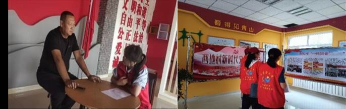 姚欣怡和李雅两位同学在下乡的过程中,最大的感受是在乡村振兴战略给农村面貌带来巨大改变的背后,有着无数人的默默奉献。“在西地村的村史馆里,陈列了很多村里的模范人物的事迹,她们孝老敬亲、乐于助人、爱岗敬业,这些品质都值得我们深入去了解、去学习、去传承。”她们认为:“尽管志愿服务力量微薄,但青年一代仍会积极参与其中,为人民服务,为建设社会主义现代化强国添砖加瓦。”