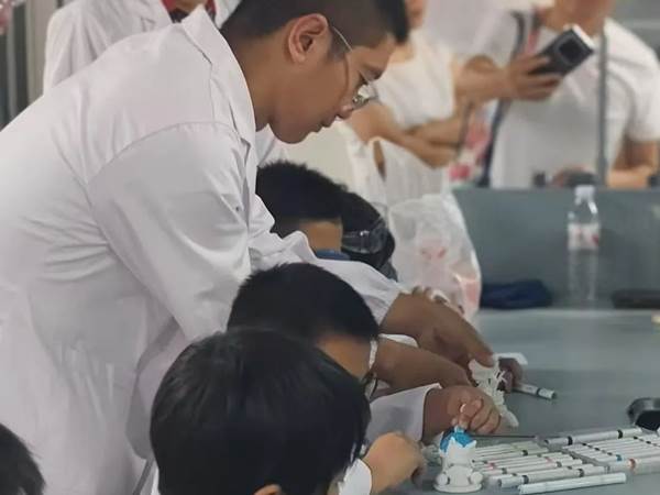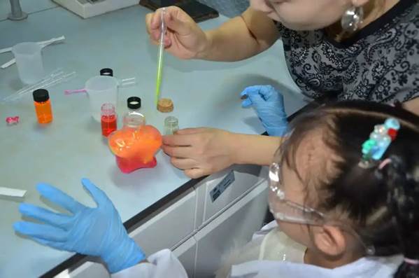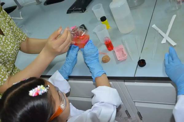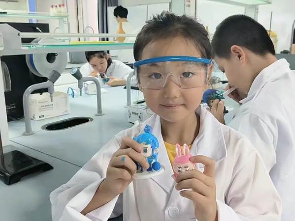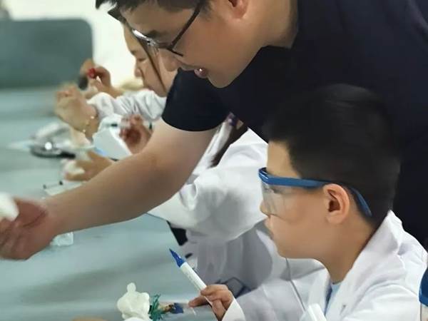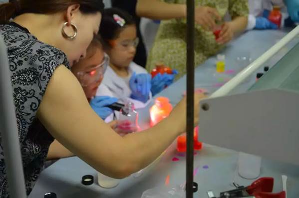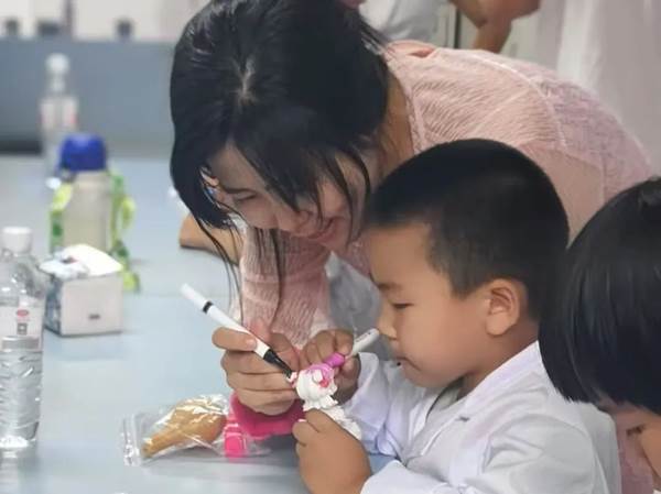 孩子们在专业老师指导下,亲手制作会发光的恐龙蛋和梦幻荧光瓶,化身调色大师探索荧光现象背后的科学原理。实验过程中,家长与孩子共同配合完成操作,他们一起讨论实验步骤、分享发现的喜悦。老师在保证孩子们实验安全的前提下,将 “魔法光” 与科技点亮生活、服务社会的 “大梦想” 相联系,引导他们体会科学家们追求真理、勇于探索的精神,在他们的心田播撒下 “科技强国” 的种子。