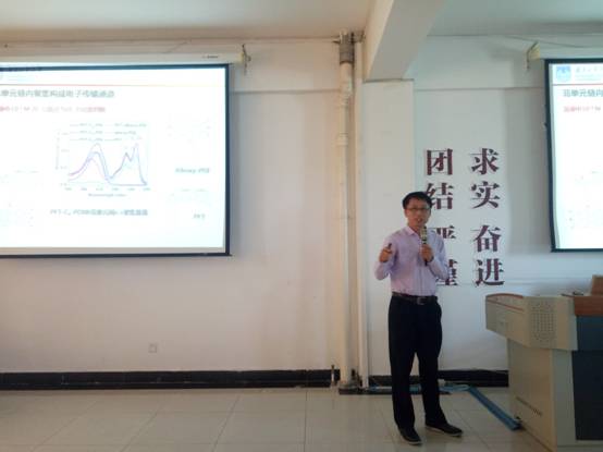 高德青教授的报告题目是“太阳能电池有机功能材料的研发”。报告主要围绕太阳能电池有机功能材料的研发、钙钛矿太阳能电池的研究、利用界面材料和界面工程改善载流子传输和稳定性这三个方面展开,为相关专业的师生提供了新的研究思路。