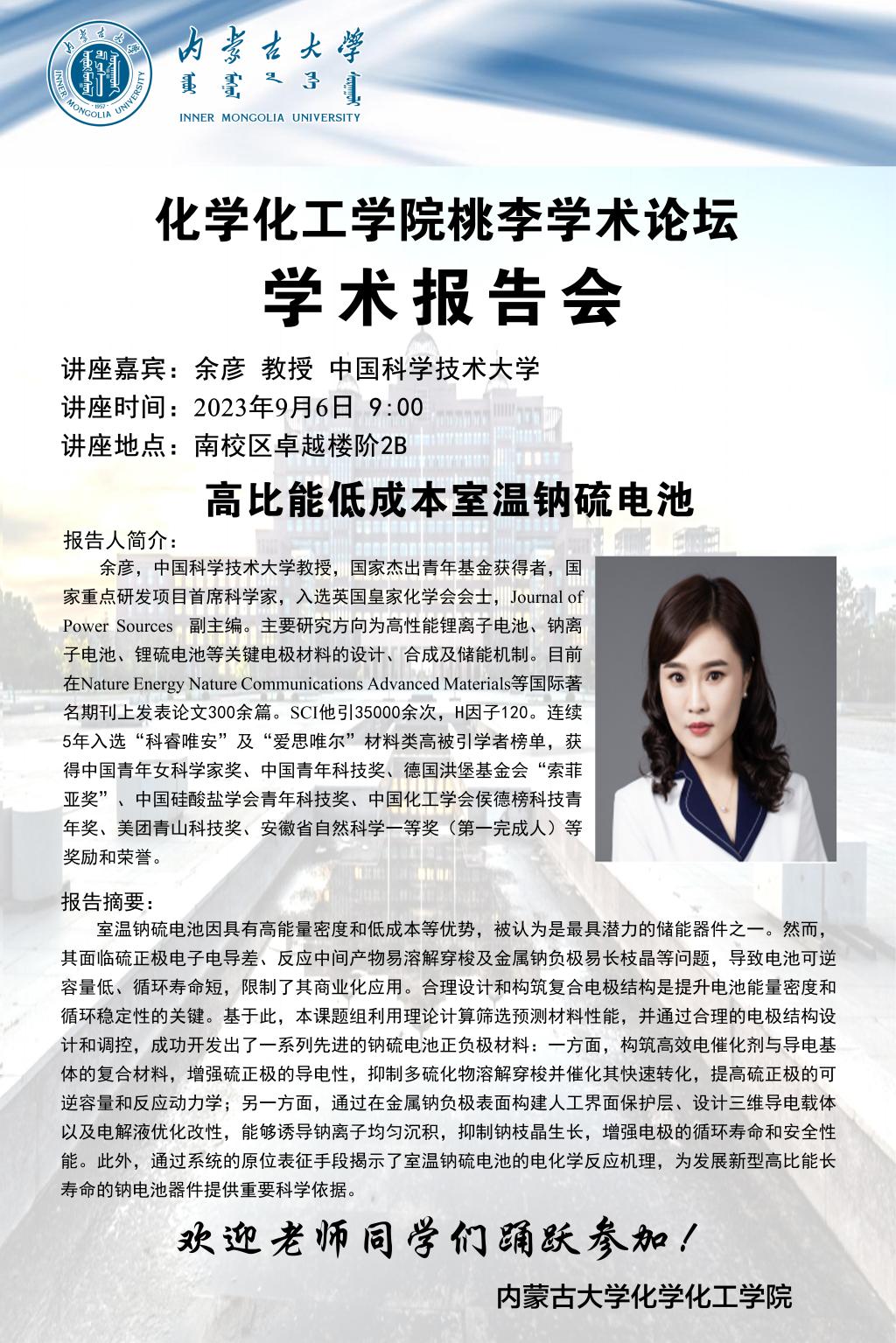 【桃李学术论坛-135】高比能低成本室温钠硫电池