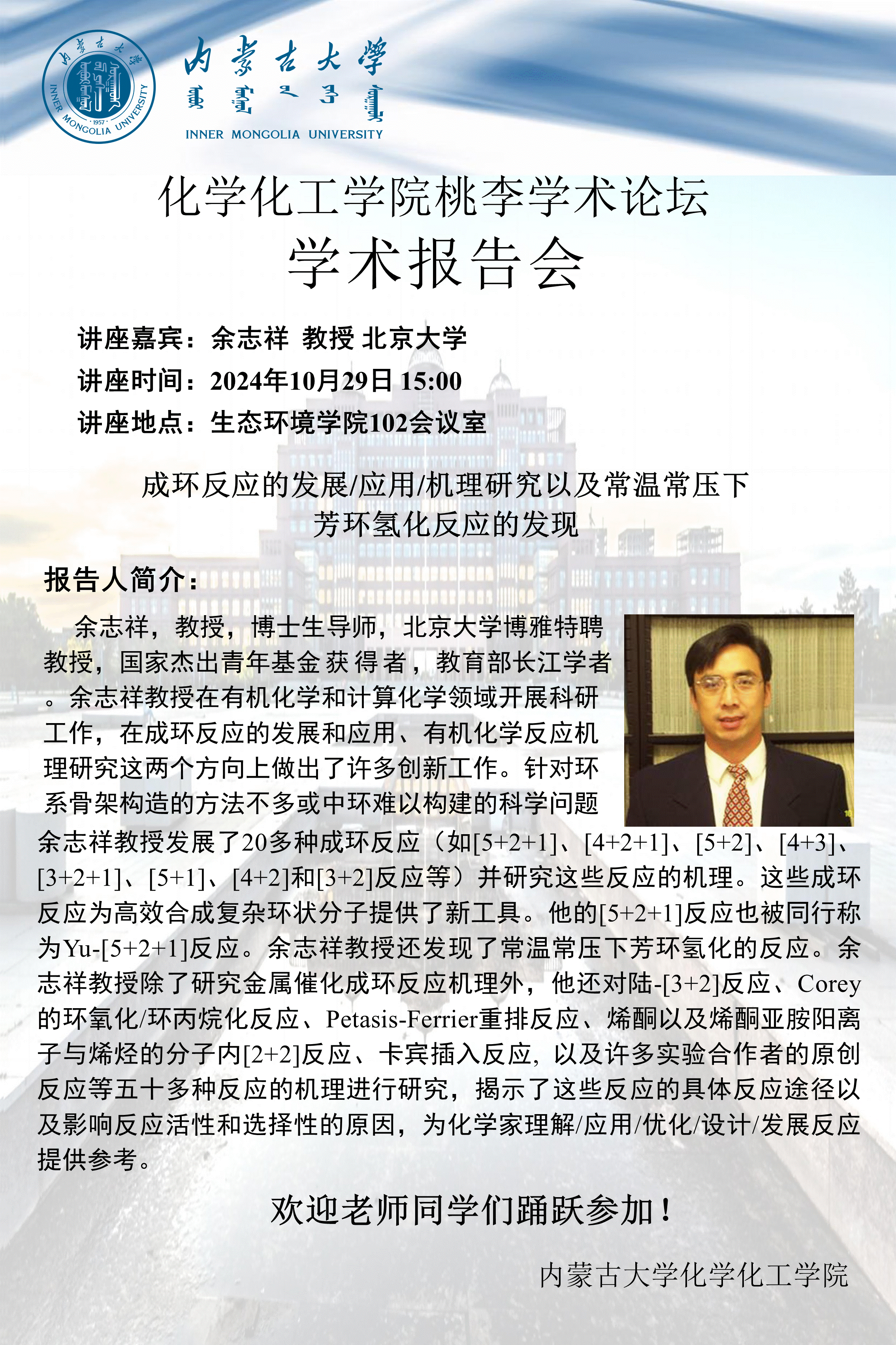 db旗舰桃李学术论坛——成环反应的发展/应用/机理研究以及常温常压下芳环氢化反应的发现 余志祥教授北京大学