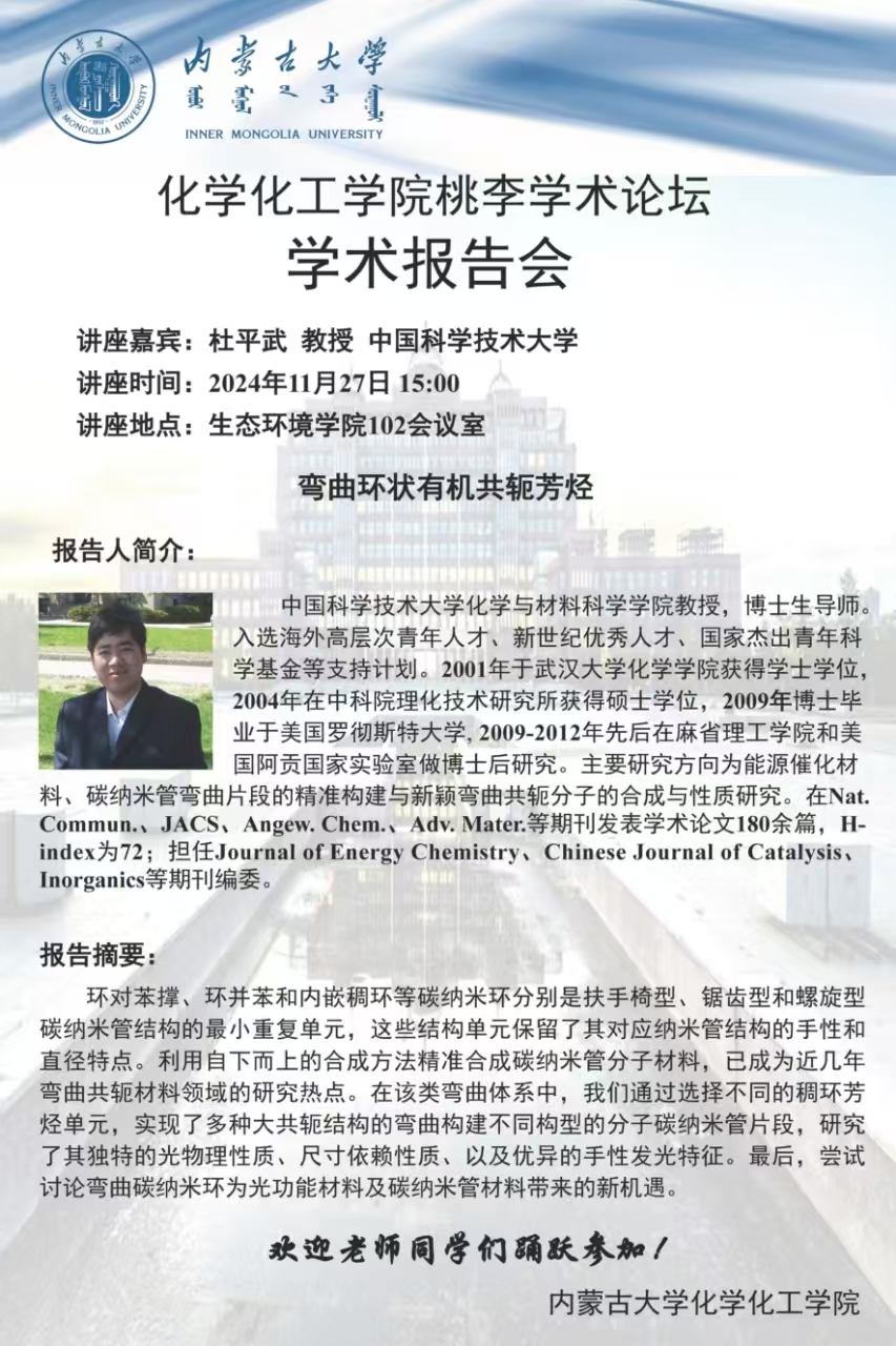 db旗舰桃李学术论坛——弯曲环状有机共轭芳烃 杜平武教授 中国科学技术大学