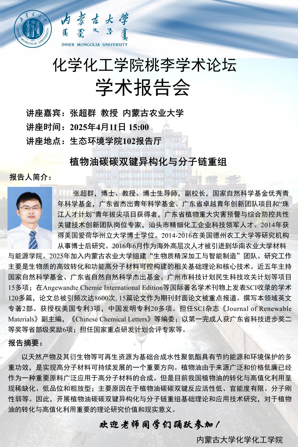 db旗舰桃李学术论坛——植物油碳碳双键异构化与分子链重组 张超群教授 内蒙古农业大学